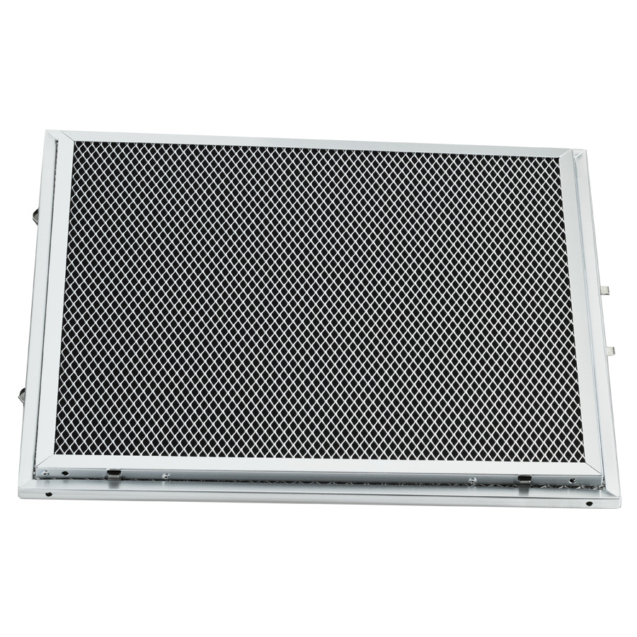 - Metal frame filter with mesh or grid and separable activated carbon cartridge at the rear