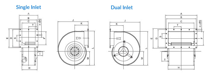 Dmuchawy odśrodkowe z silnikami zewnętrznego wirnika mają szerokie zastosowanie w UPS-ach, panelach sterowania, kolejnictwie, prostownikach, maszynach do formowania z rozdmuchem itp. Dmuchawy odśrodkowe charakteryzują się wysoką wydajnością i niskim poziomem hałasu, stosunkowo małym przepływem powietrza przy wysokim ciśnieniu statycznym. Są to dmuchawy oszczędzające miejsce. Te dmuchawy odśrodkowe są dostępne z jednym lub dwoma wlotami. W dmuchawie z jednym wlotem silnik zewnętrznego wirnika jest zintegrowany z wirnikiem, który jest zamontowany na bocznej ścianie obudowy spiralnej. Dmuchawy z dwoma wlotami mają wyjątkowo niskie poziomy wibracji.